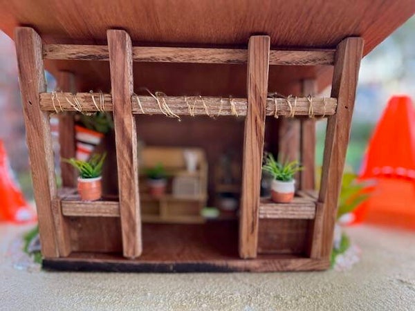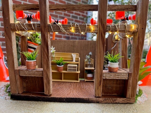 This toy was crafted in 2023 by our family for a very special little boy. It was custom made using old discarded wood found in New Orleans, along with a few new purchases. If you look closely at the office, you will notice old nail holes and distressed wood.