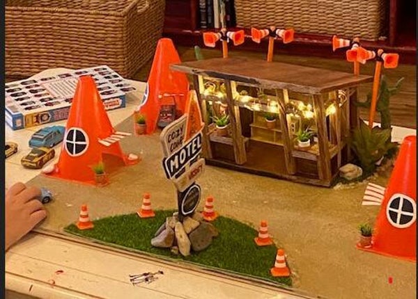 This toy represents the primary setting for a fictional town called Radiator Springs, Arizona that was featured in the very popular Disney movie “Cars”.