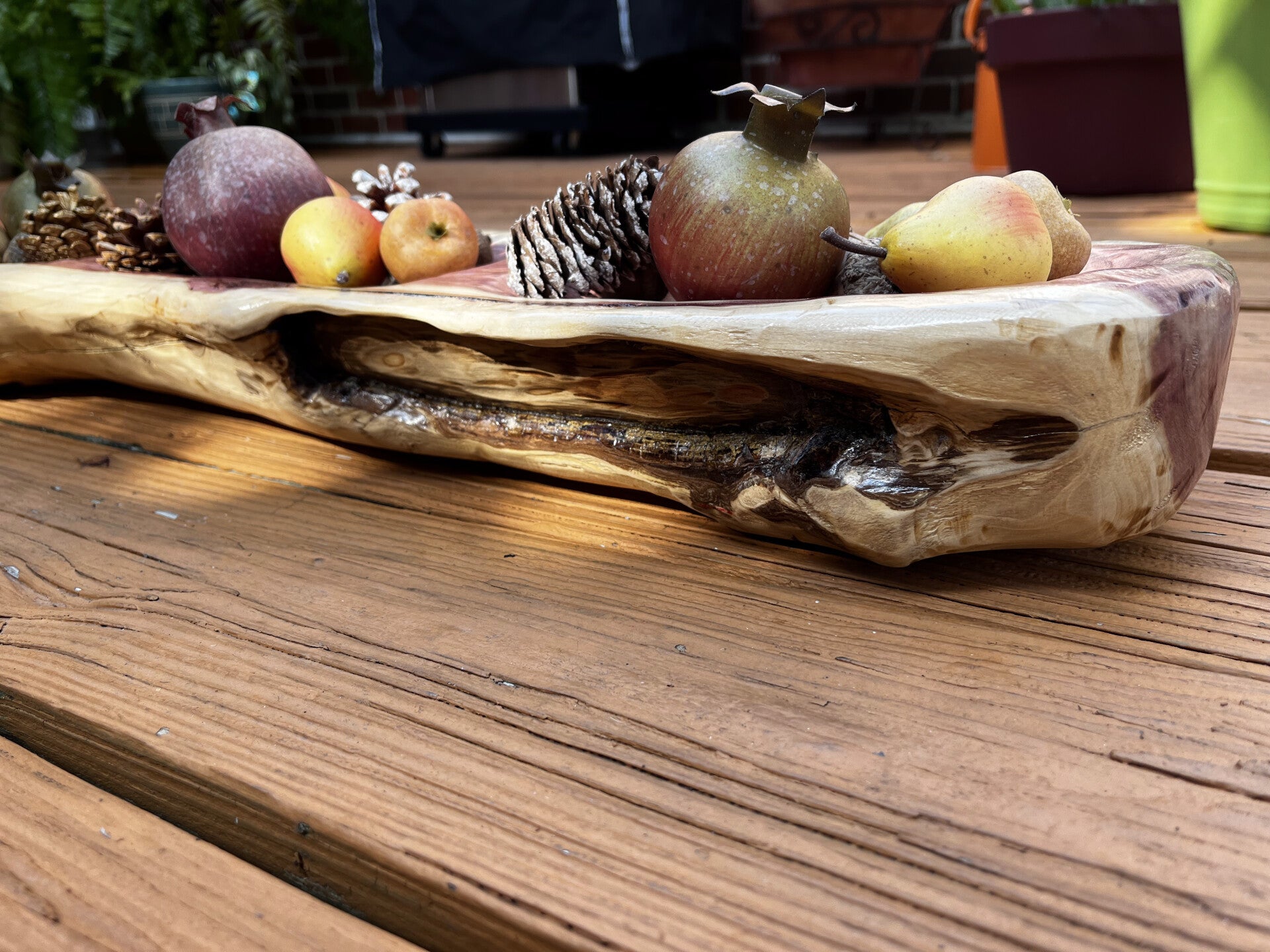 This piece has been dried, carved and polyurethaned to accent the beauty of the natural colors. This piece was crafted for you in 2025, with you in mind.