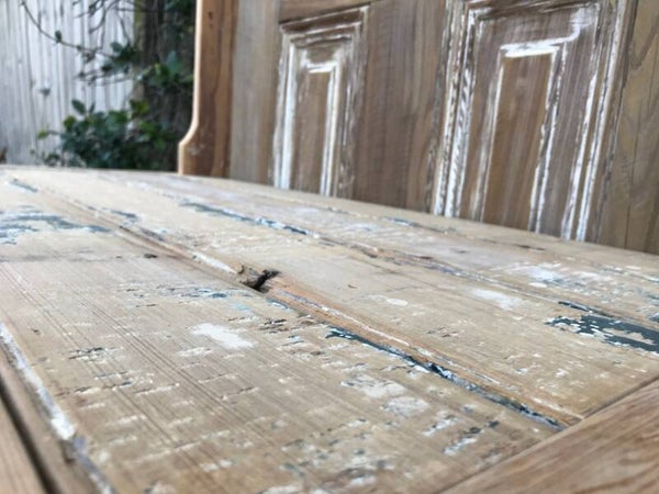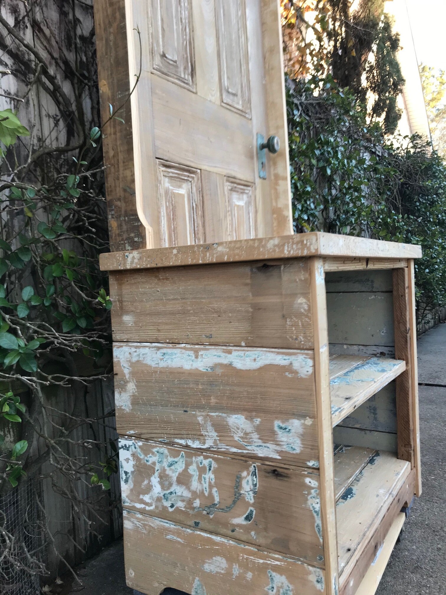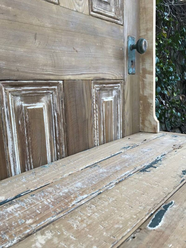 This furniture was custom made using reclaimed wood from several sources near historic Esplanade Ave. in New Orleans. The top, sides and shelves on the base are floor boards salvaged from a plantation style home on Bayou St. John. That home was built in 1837 by the Blanc family that owned the first brick company in NOLA. In early 1900, the home was donated to the Archdiocese of New Orleans Holy Rosary parish and has served as the church rectory ever since then. The back, an old basement sized cypress door, was purchased from a home owner in the same area. The very bottom and frame of the hall tree was made from non-uniform framing lumber typically found in attics of old homes. If you look closely, you will notice nail holes, old brass keyhole lock, distressed features and some of the original paint on the boards that I purposely left to retain its history.