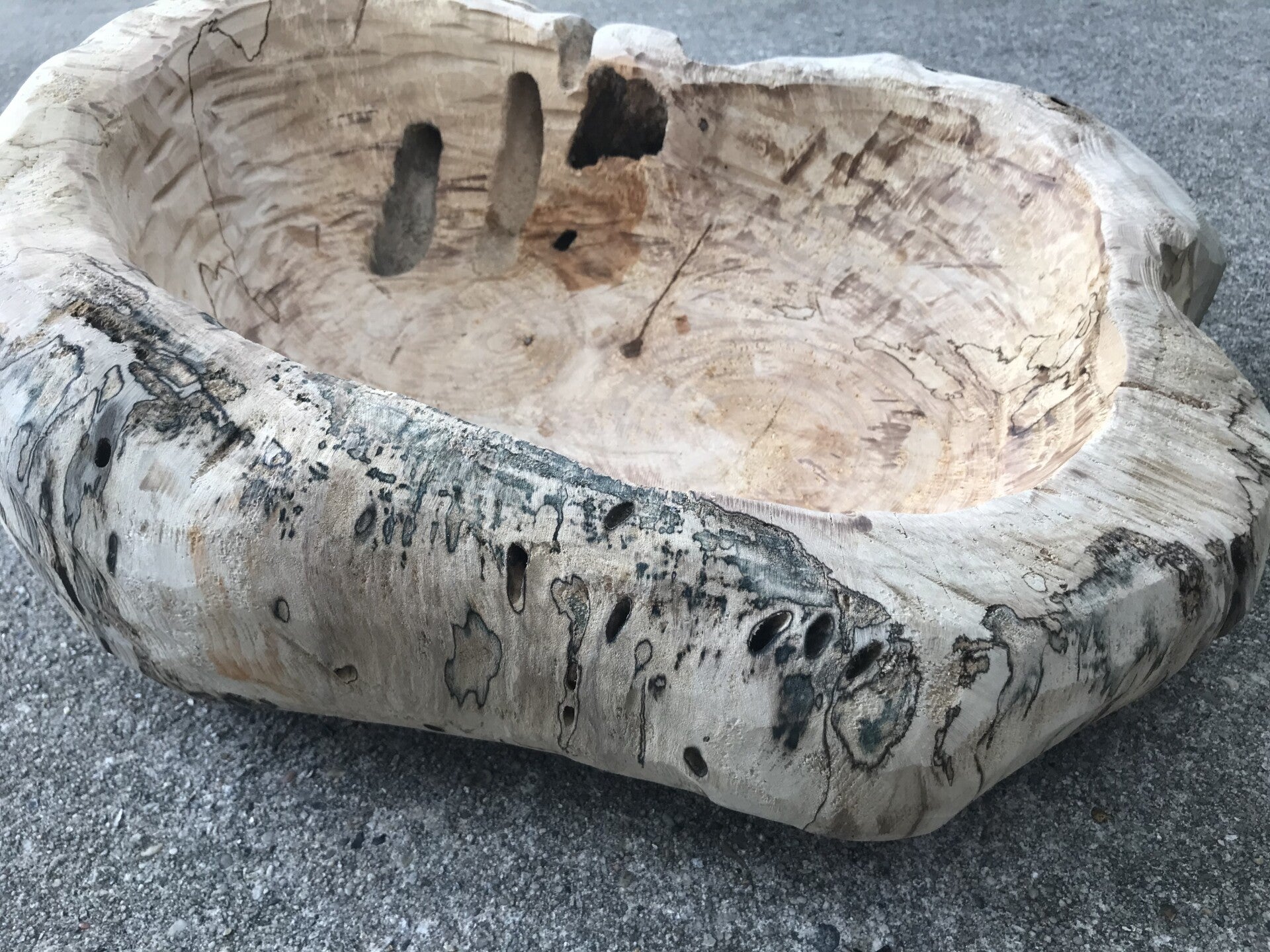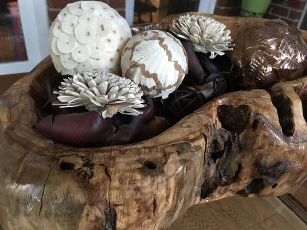 This piece has been dried, carved and polyurethaned to accent the beauty of the natural colors in the wood. The wood was accumulated and crafted in 2021.