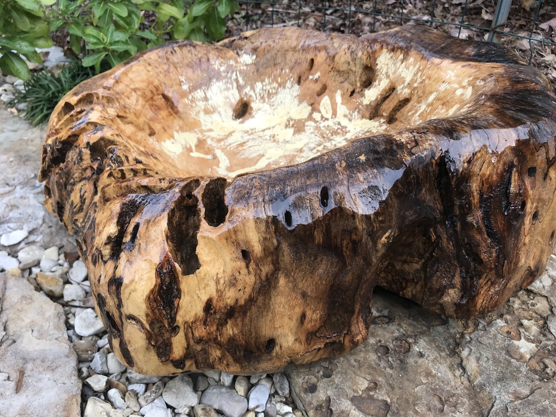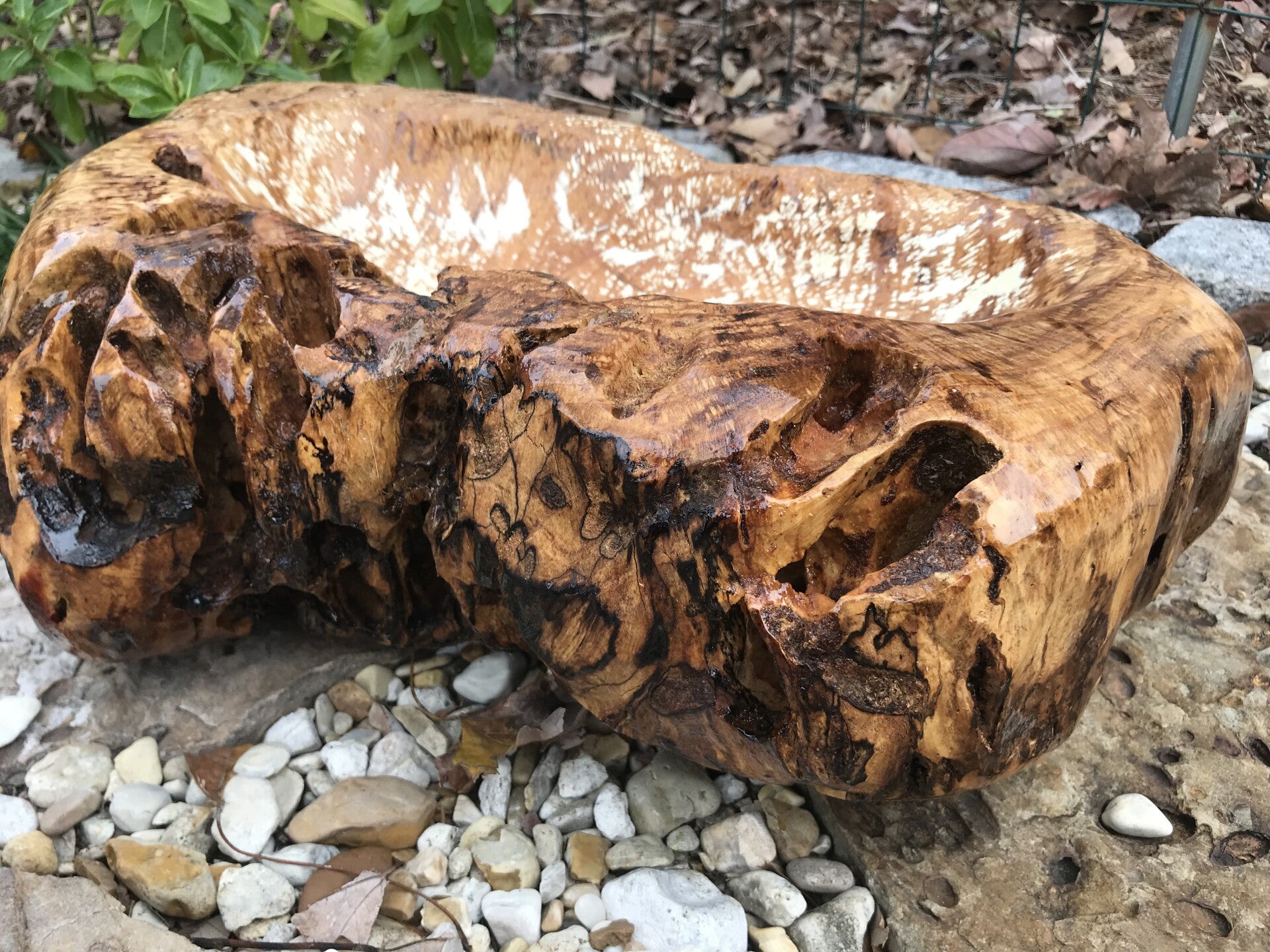 This piece has been dried, carved and polyurethaned to accent the beauty of the natural colors. The wood was accumulated and crafted in 2021.