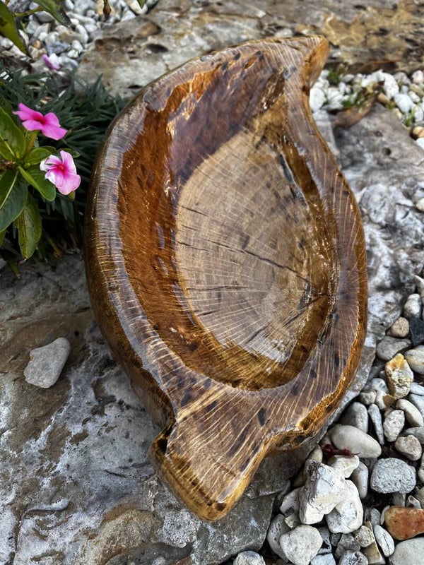 This piece, has been dried, carved and polyurethaned to accent the beauty of the natural colors. It was crafted in 2022.