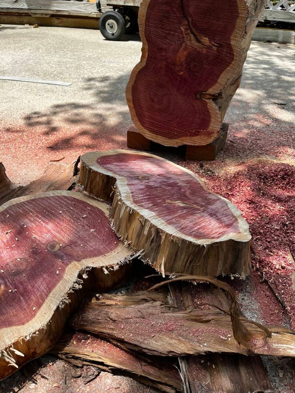 This bowl was power carved from the trunk of a Red Cedar tree that fell in 2021 during hurricane Ida. This large tree was located at the corner of Bell and N. White Street just off historic Esplanade Avenue.