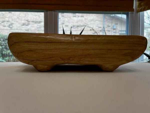 This wooden bowl was power-carved from a piece of Bald Cypress wood cut from a tree that fell during the 2021 hurricane Ida.