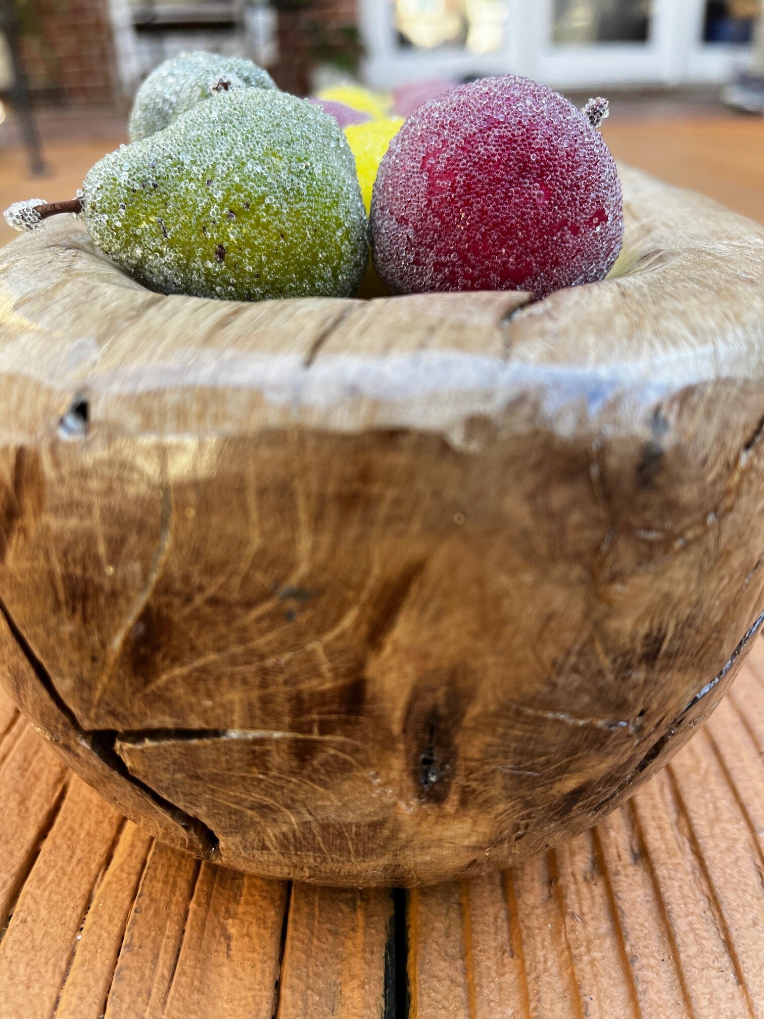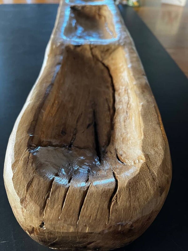 This piece was dried, carved and polyurethaned to accent the beauty of the natural colors. It was crafted in 2021.